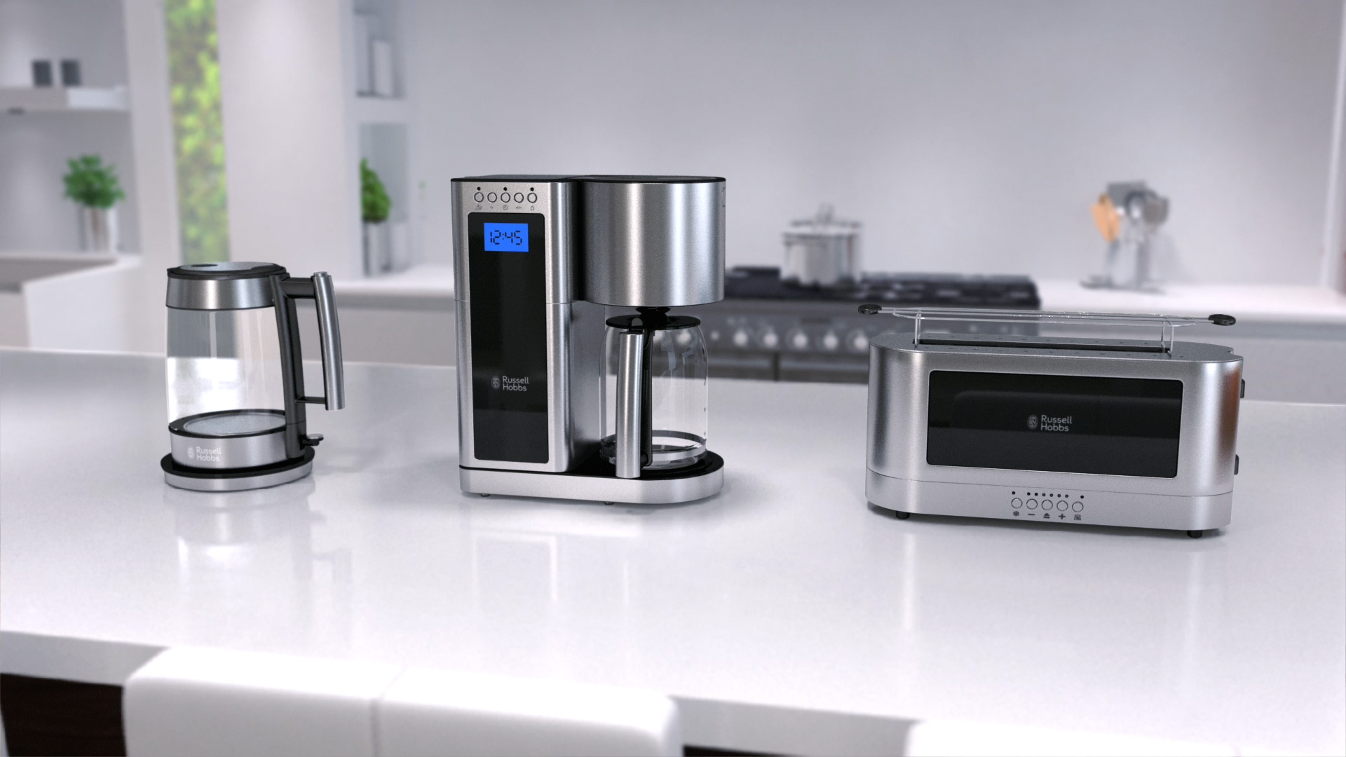 ¡Nueva línea de productos moderna y estilizada! Proyecto para la línea de productos Russell Hobbs Black. Tratamos de mostrar cada detalle de los productos, desde los materiales hasta el funcionamiento de cada uno de ellos.
